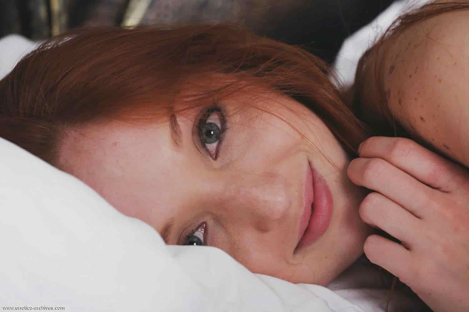 Рыжеволосая красотка Michelle H эротично позирует в постели, демонстрируя сексуальные формы